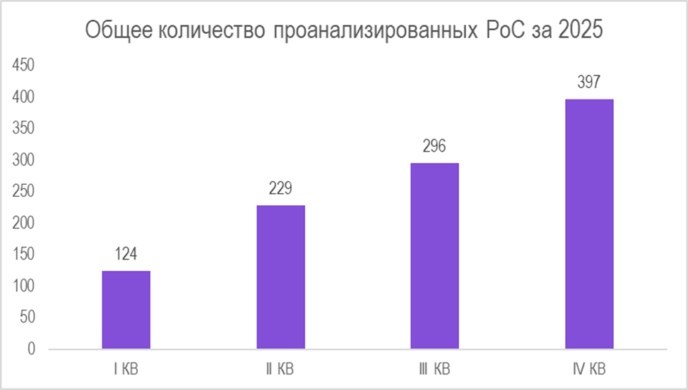 Так, в 4-м квартале 2025 года было обнаружено 397 уязвимостей — это 38% от всех найденных за год, а прирост в сравнении с 1-м кварталом составил 220%.