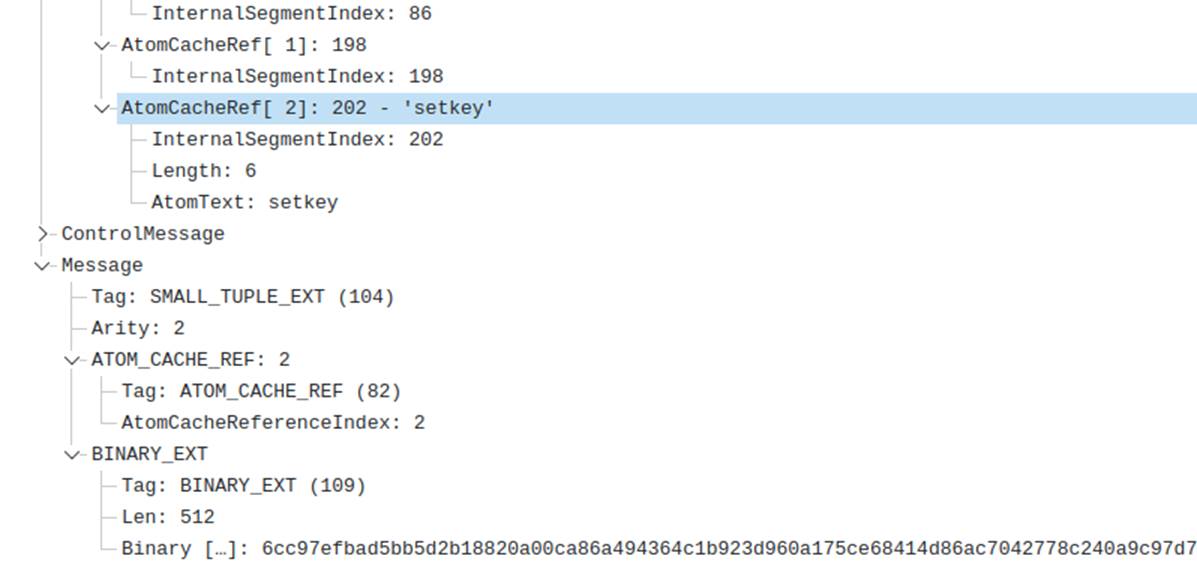 Выходит, на данном этапе есть зашифрованное сообщение, и мы можем разобрать шифрование в соседнем модуле. Остается найти ключ. Ключ передается командой setkey. Заглядываем обратно в трафик, находим эту команду, там ключ и найдем.