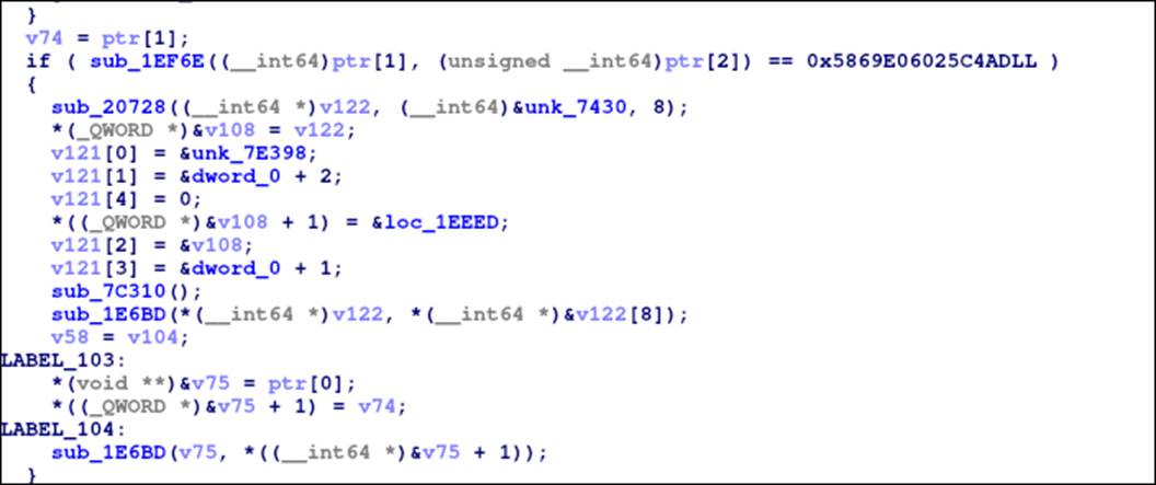 Похоже, что здесь проверяется какая-то чек-сумма. Если заглянуть в саму функцию 1ef6e, увидим следующую картину: