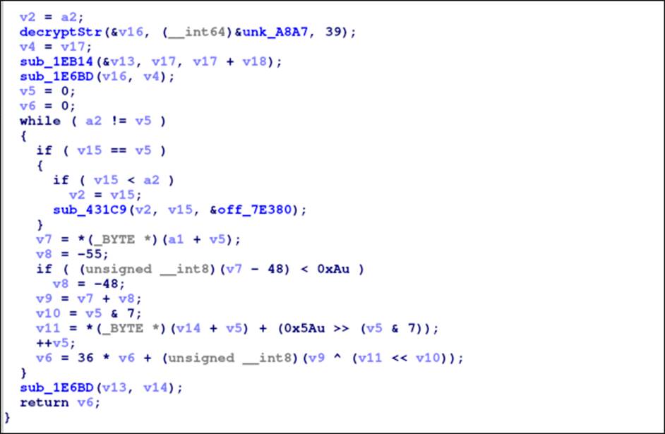 Действительно! В этой функции подсчитывается какая-то чек-сумма, также видим, что перед этим расшифровывается строка.