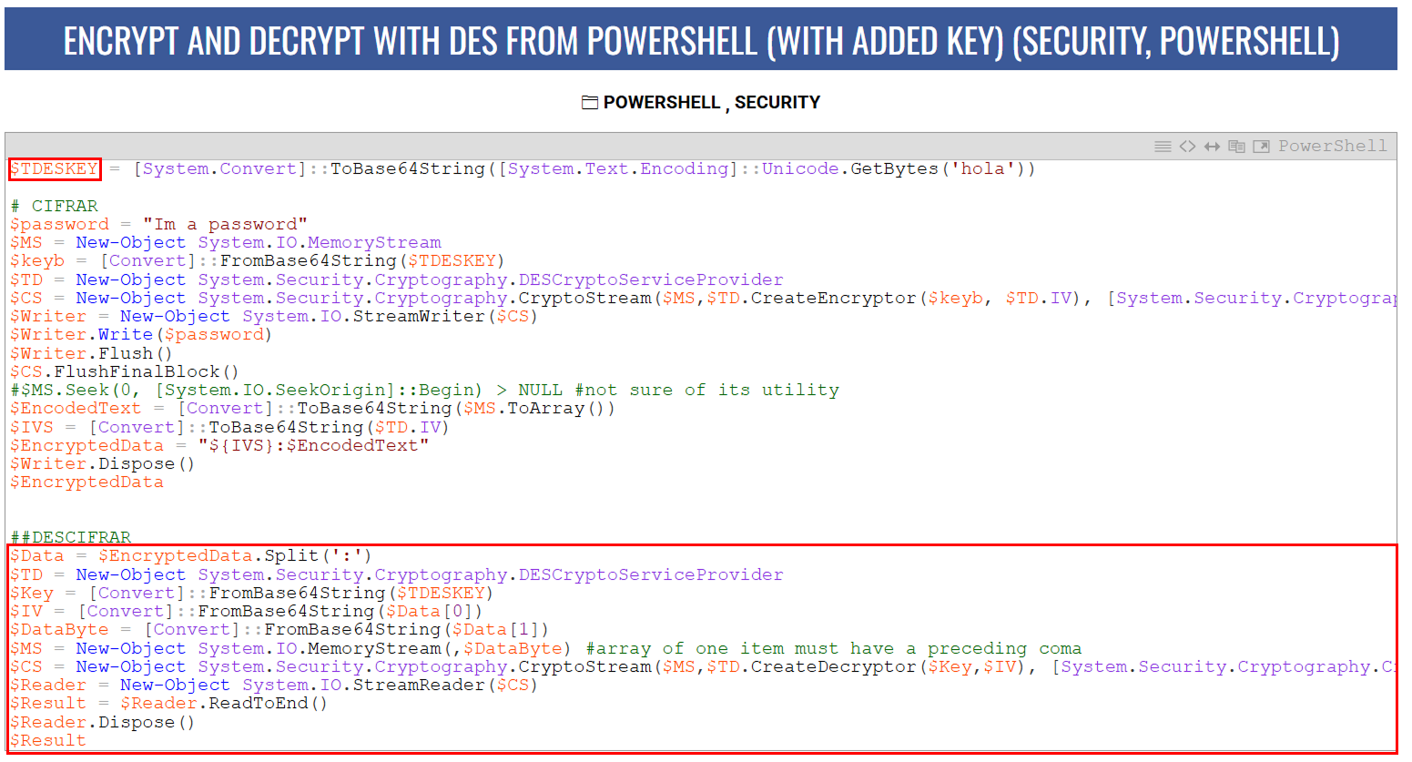 $Key = [Convert]::FromBase64String($TDESKEY)
