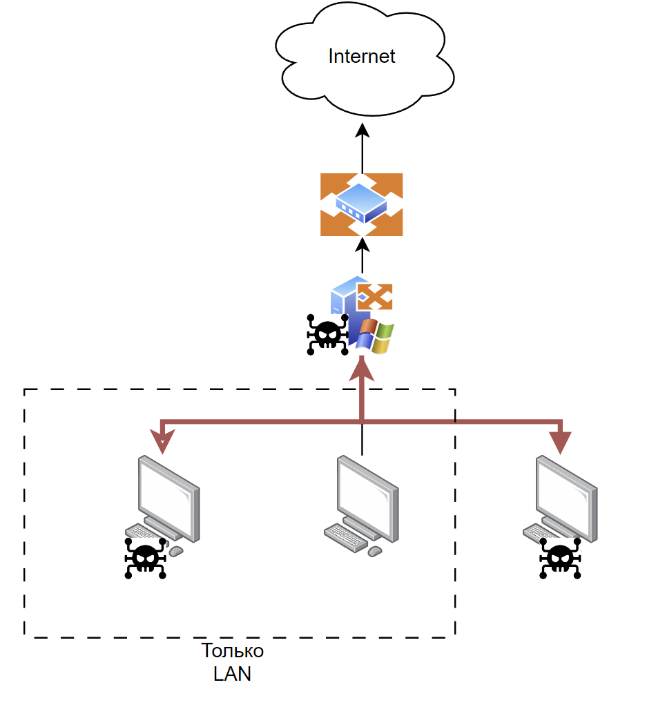 Как мы уже говорили, данный бэкдор может в теории соединяться с другими зараженными машинами. Это позволяет ему поддерживать связь с серверами и АРМ в сегментах без прямого доступа к интернету.