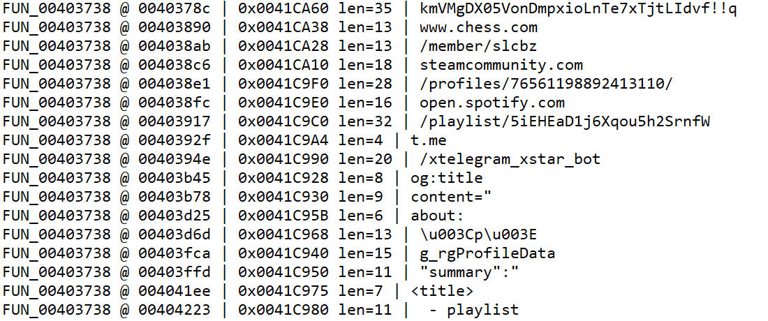 Вместо полноценного HTML-парсера семпл использует упрощенную схему строкового поиска. Ответ страницы рассматривается как обычный буфер, внутри которого последовательно выполняется поиск коротких маркеров. Для каждой платформы применяется свой набор маркеров, после чего значение вырезается по простым правилам (между кавычками, до разделителя, до конца тега).